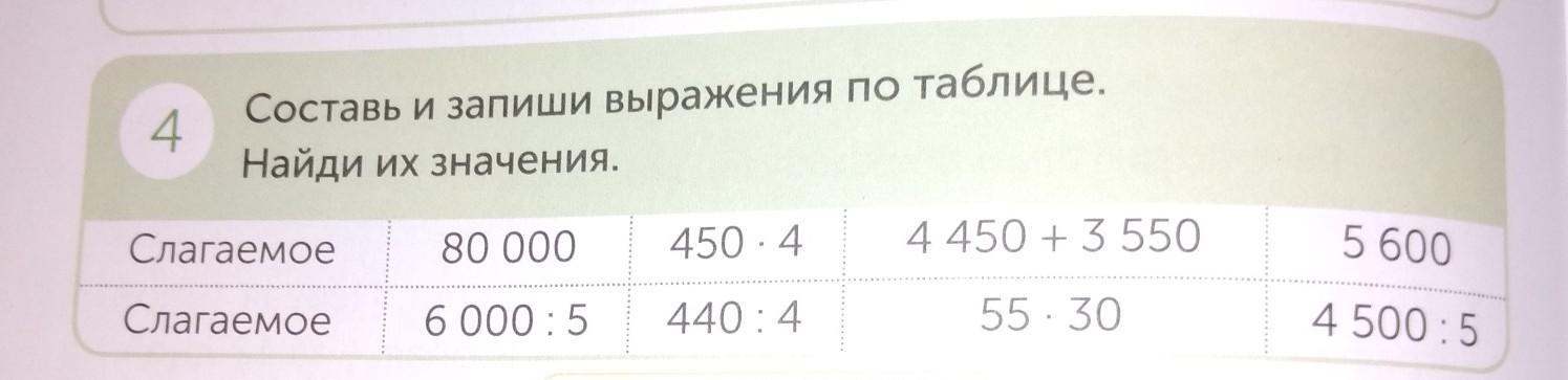 4.Составь и запиши выражения по таблице.Найди их значения.Примеры столбиком.