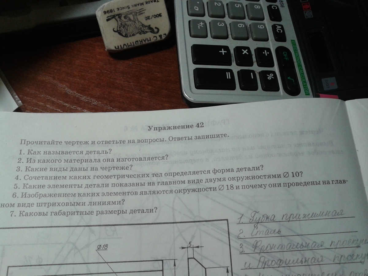 6)на главном виде и виде слева нет штриховых линий, значит все элементы детали мы видим.