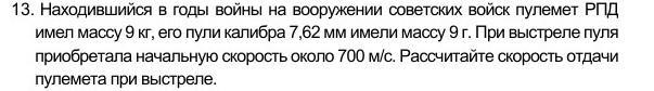 Значит, скорость отдачи пулемёта (м/с)