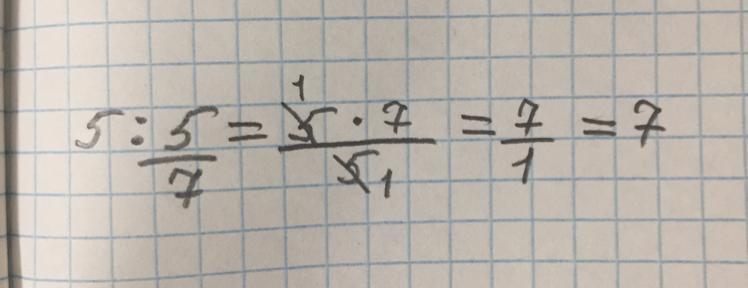 Дальше сокращается,5 и 5 сократимы на 5 (нужно выбрать наибольший делитель,чтобы ответ получился как можно меньше)