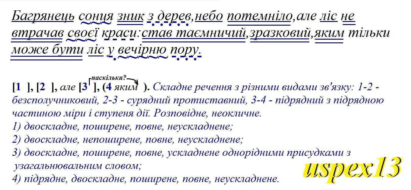 Багрянець сонця зник з дерев,небо по темніло,але ліс невтрачав своєї краси:став таємничий,зразковий,яким тільки може бути ліс у вечірню пору.