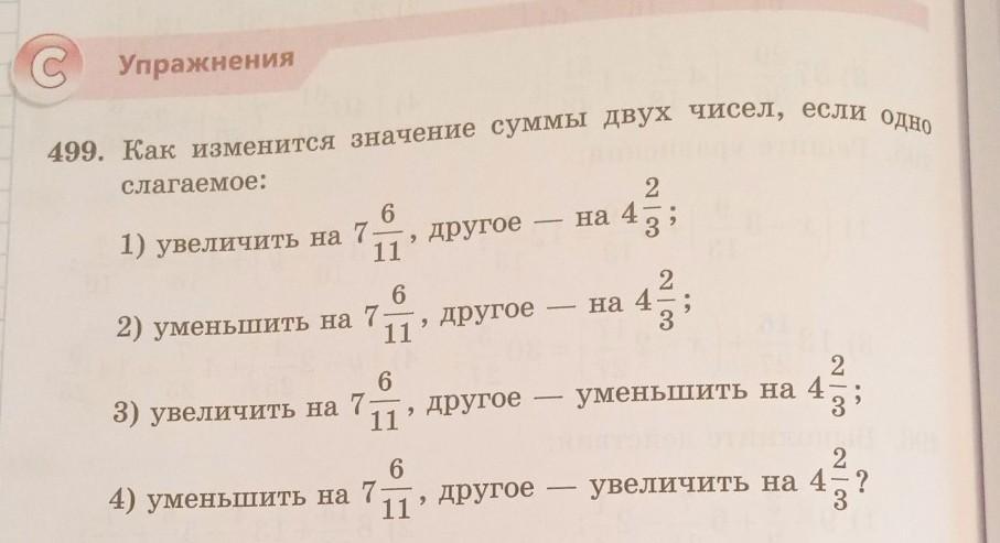 7 6/11 + 4 2/3 = 12 7/33 - увеличивается на - ОТВЕТ2) Числа одинаковые с 1) - сумма уменьшится на 12 7/33 - ОТВЕТ