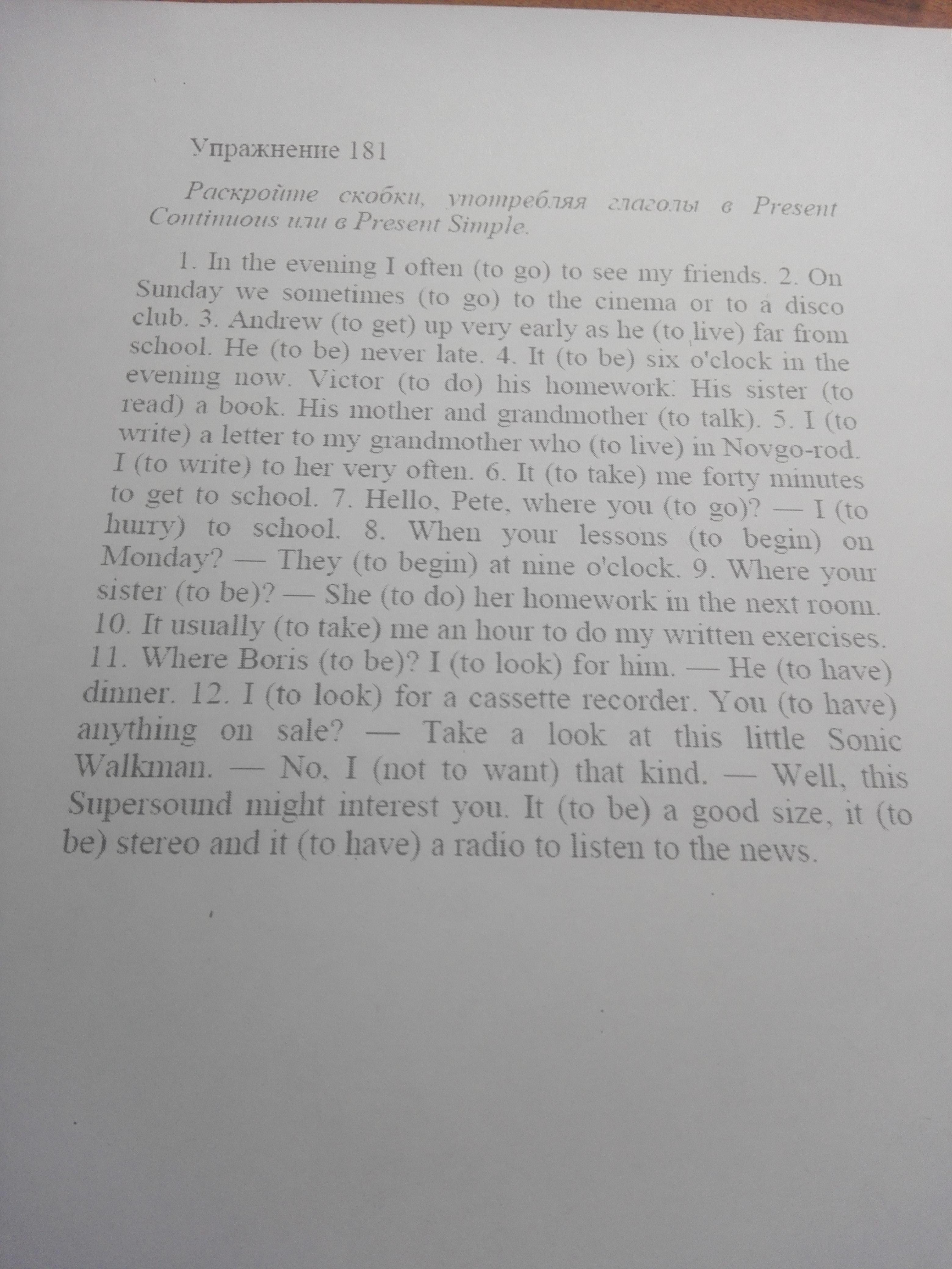 5. I'm writing a letter to my grandmother who lives in Novgorod. I write to her very often.