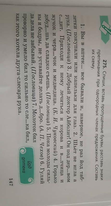 упр.275. Спиши,вставь пропущенные буквы,расставь знаки препинания при однородных членах предложения.Составь их схему.Срочно ответьте пожалуйста