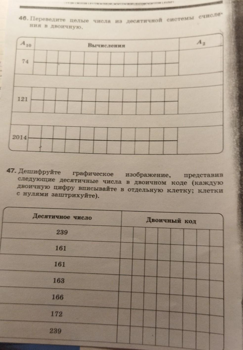 47.Дешифруйте графическое изображение,представив следующие десятичные числа в двоичном коде(каждую двоичную цифру в отдельную клетку;клетки с нулями заштрихуйте).