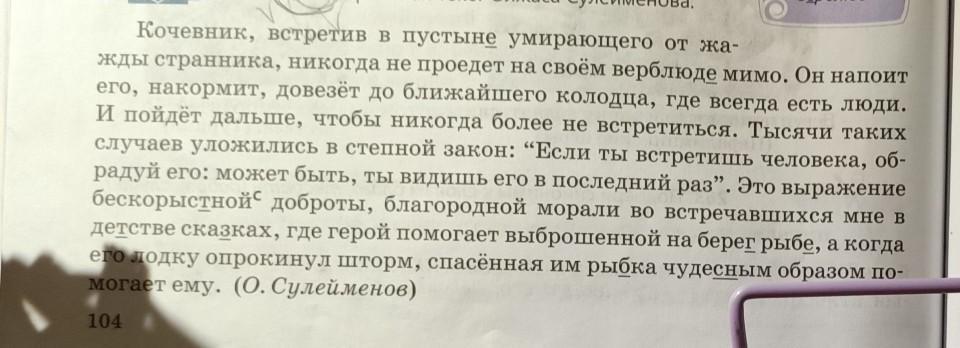 265Б. О какой обычае казахов идёт речь? Как ты понимаешь смысл выражения бескорыстная доброта, благородная мораль? Почему кочевники жили по законам бескорыстной доброты?