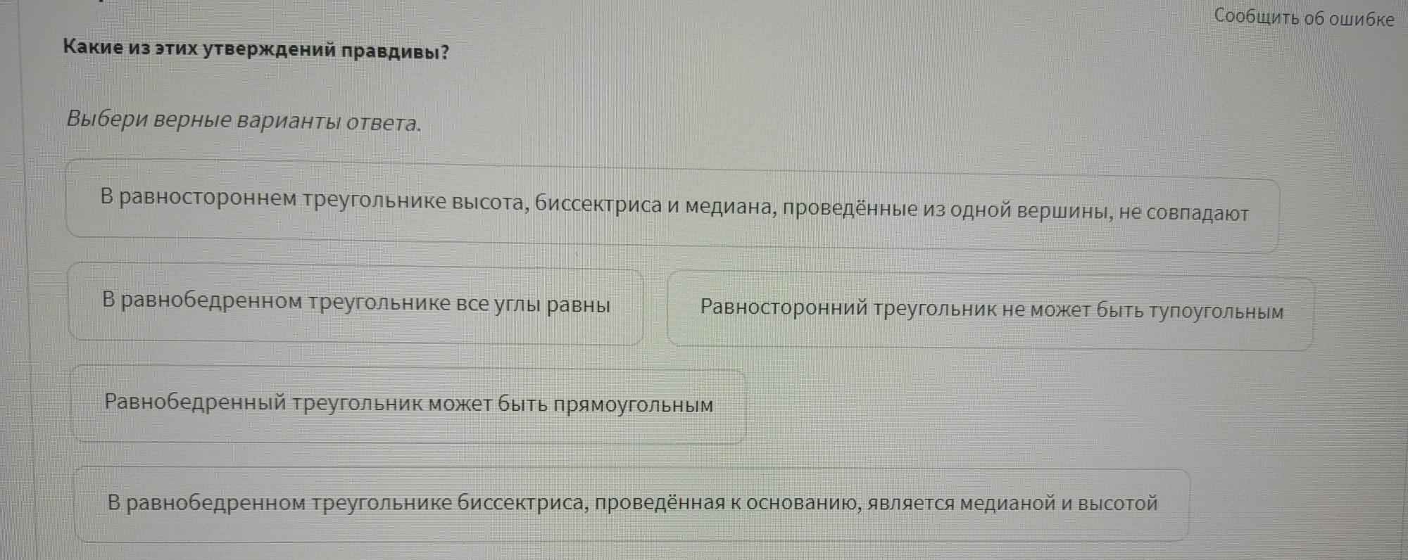 - Равносторонний треугольник не может быть тупоугольным.