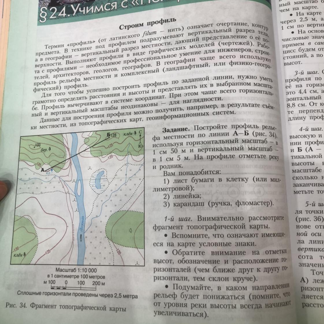 Профиль рельефа местности по линии А-Б дан ниже в приложении.