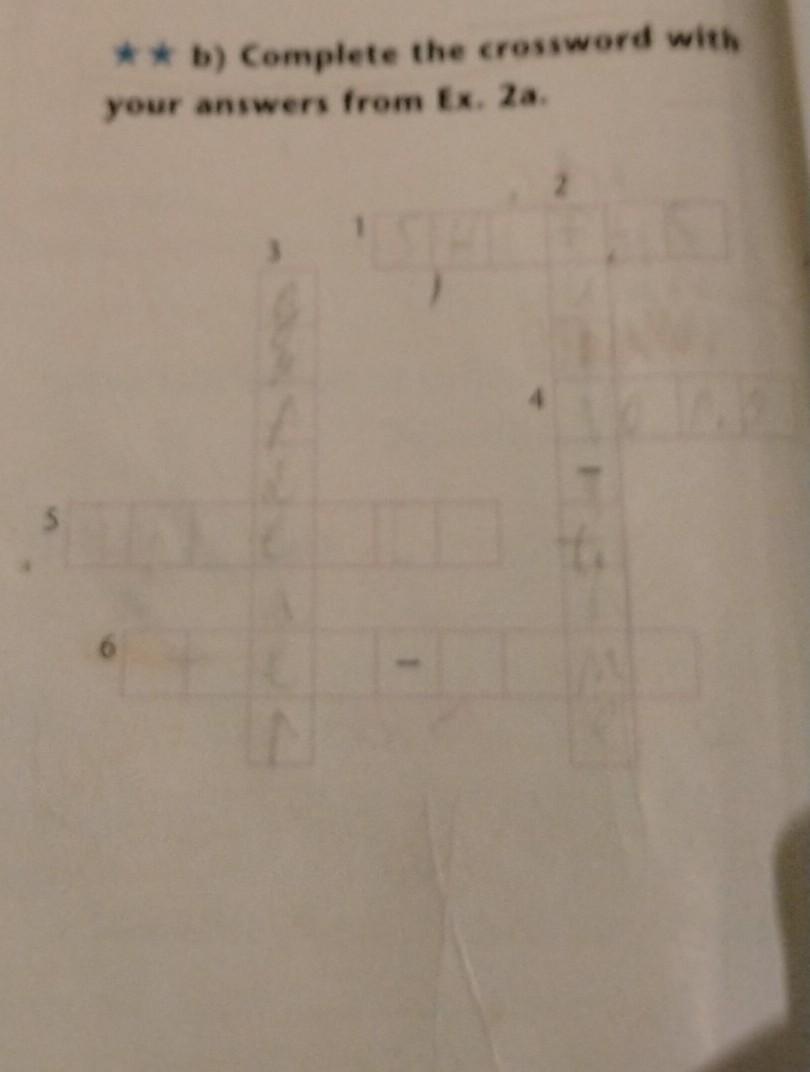 ** b) Complete the crossword with your answers from Ex. 2a. 2 1 3 g 4 - 5 6