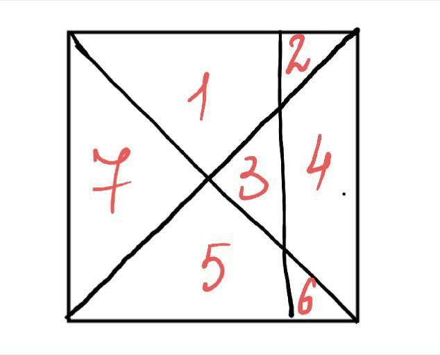 На какое наибольшее количество частей можно разделить квадрат тремя прямыми линиями?