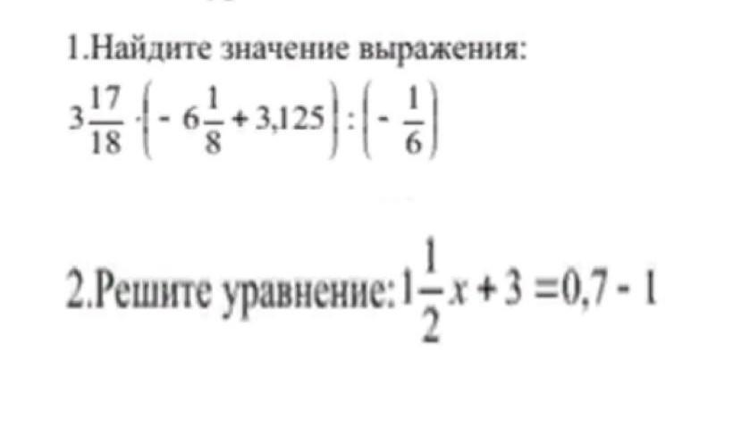 1) ( - 6 1/8 + 3,125) = -49/8 + 25/8 = - 24/8 = - 3