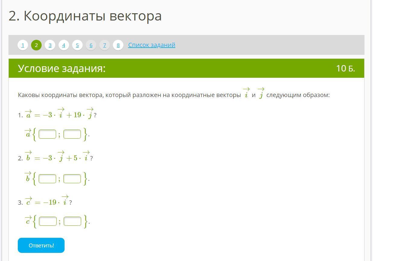 Каковы координаты вектора, который разложен на координатные векторы i→ и j→ следующим образом:
