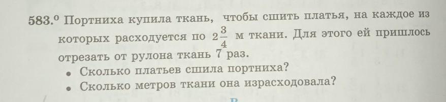 Если портниха сделала 7 резов, то у нее получилось 8 кусков ткани. Из них она сшила 8 платьев. Теперь 8*2целых 3/4= 22 метра ткани купила потртниха.