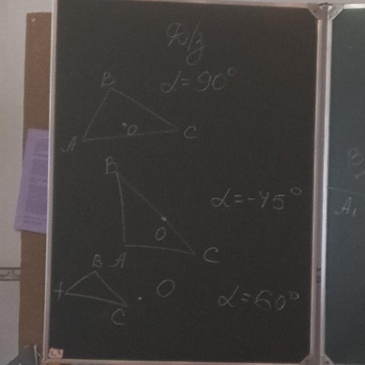 Проведіть від точки В до точки О відрізок. Прикладіть до цього відрізка транспортир. Під кутом альфа проведіть ще один відрізок з довжиною відрізка ВО. Це буде перша вершина. Проведіть такі ж дії з іншими вершинами.