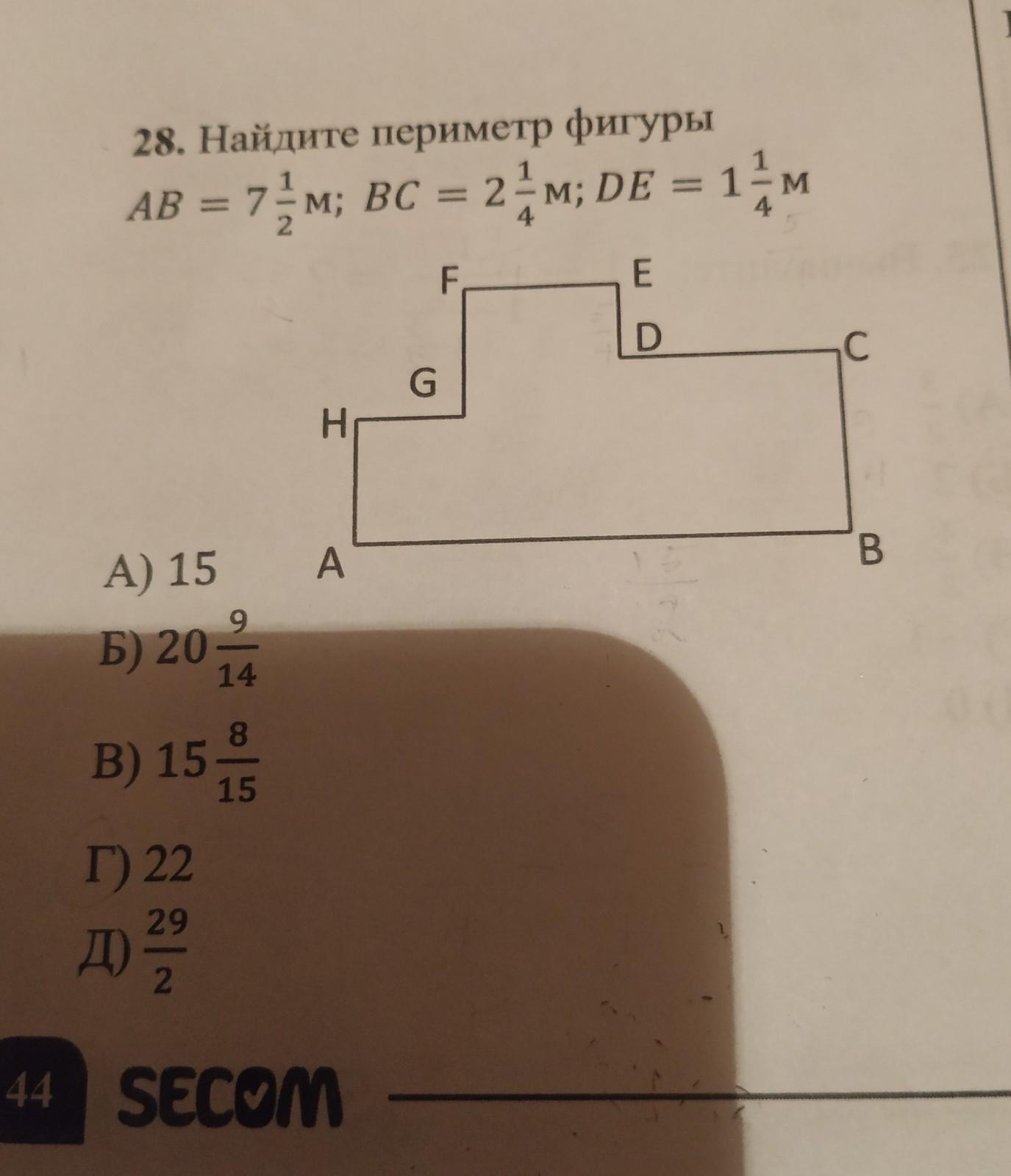 Р=2(АВ+ВС+DE)=2(7 1/2+3 1/2)=