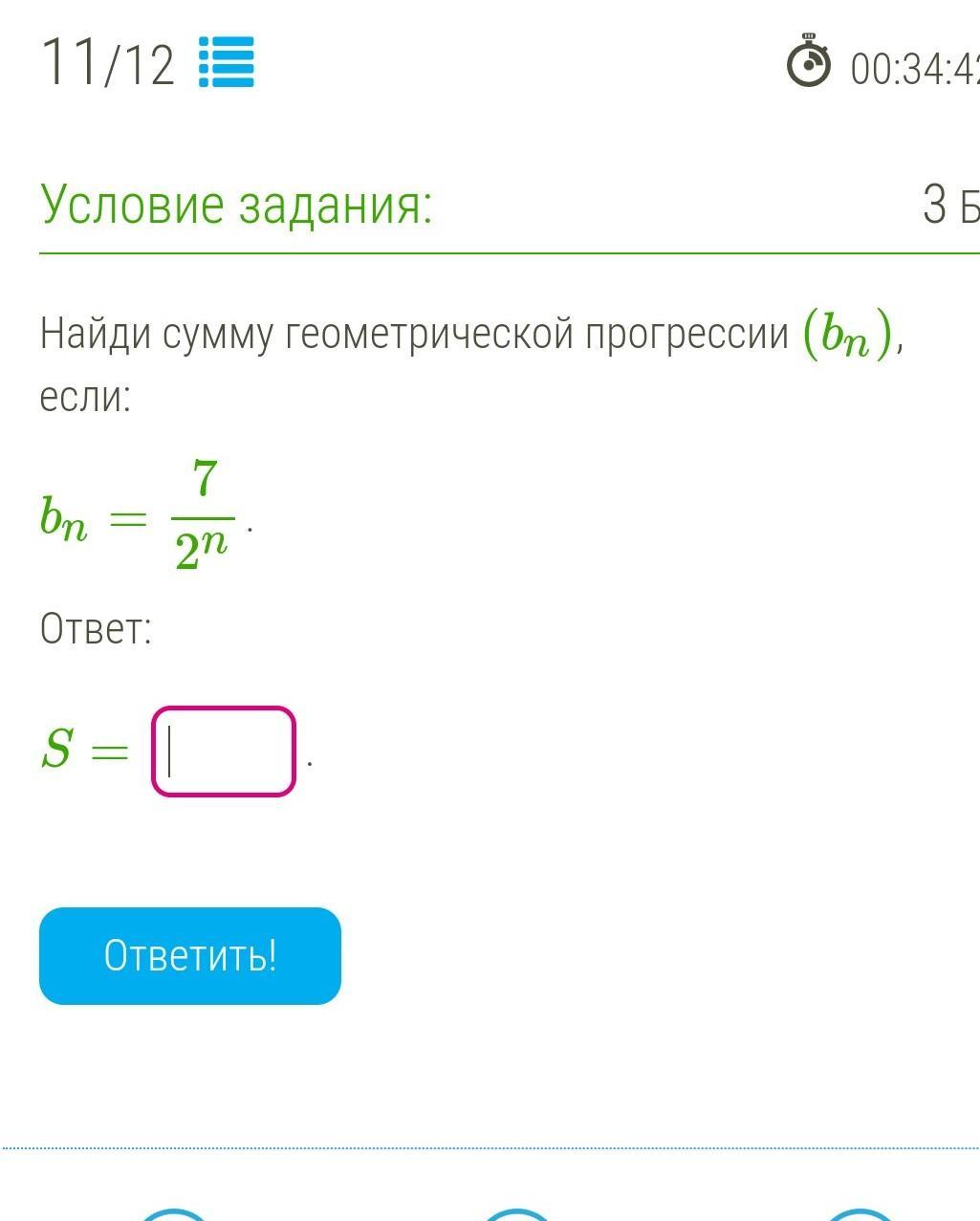 S= b1 /1-q = 3,5/1 - 0,5 = 3,5/0,5= 7