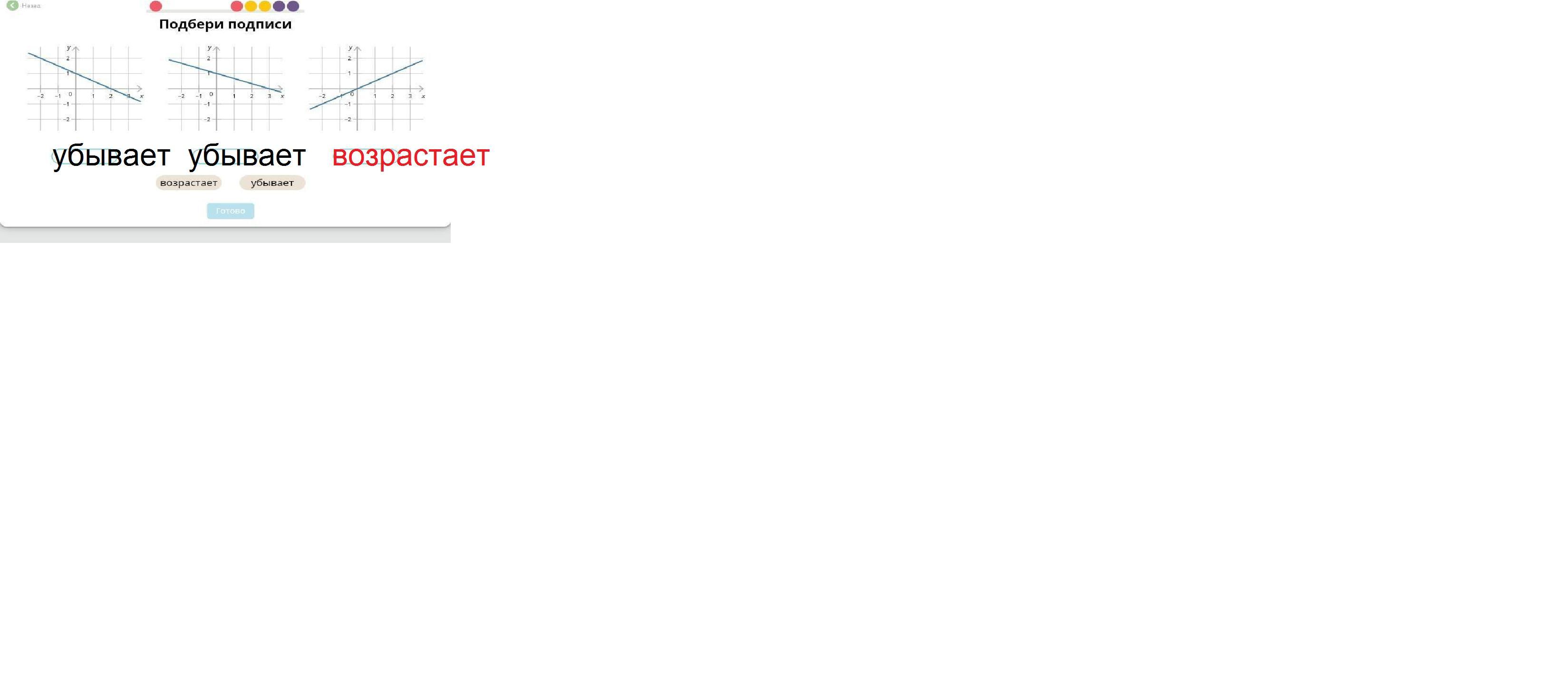 функция возрастает,когда большему значению Х соответствует большее значение У