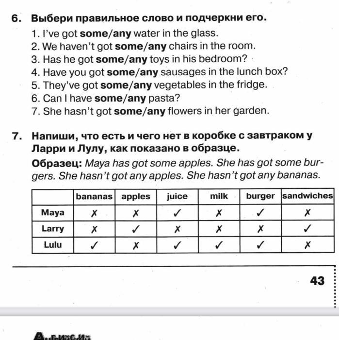 7. Напиши, что есть и чего нет в коробке с завтракому