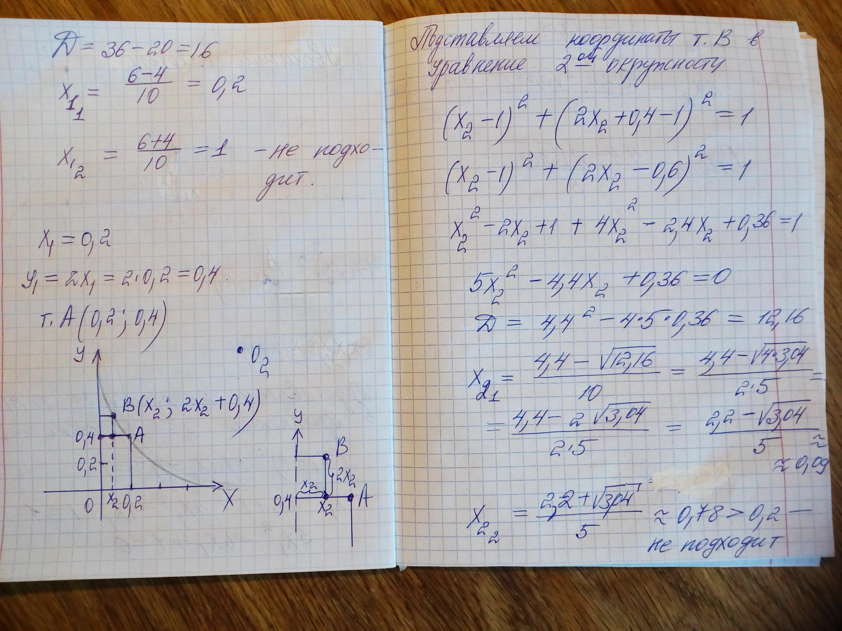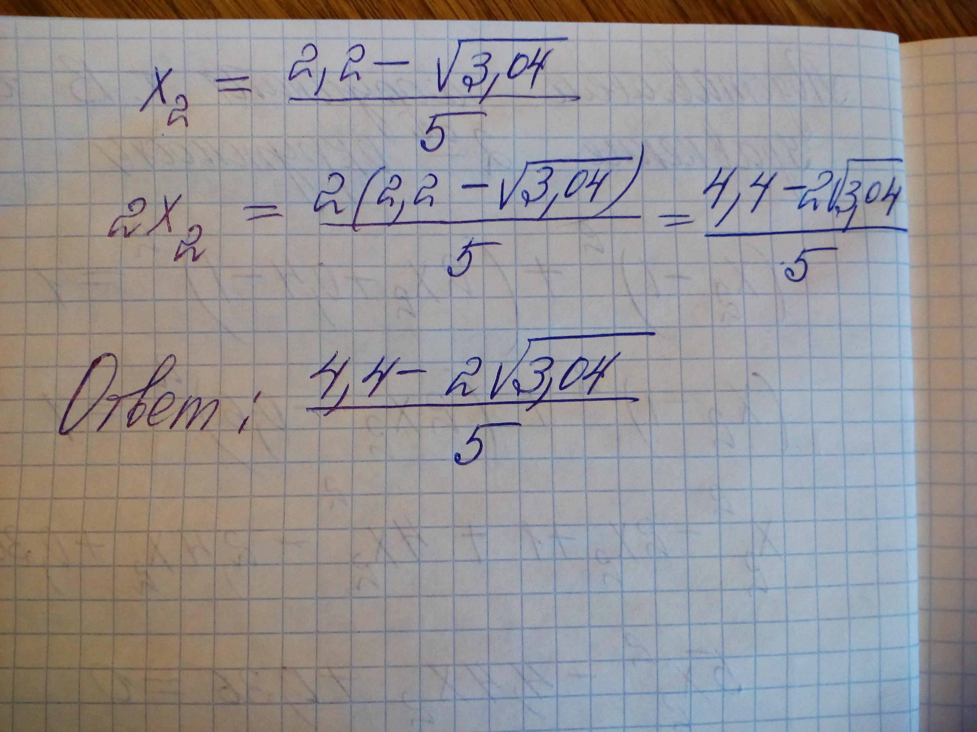 х1 = (4,4 - 2√3,04)/5. (Второе значение нам не нужно).