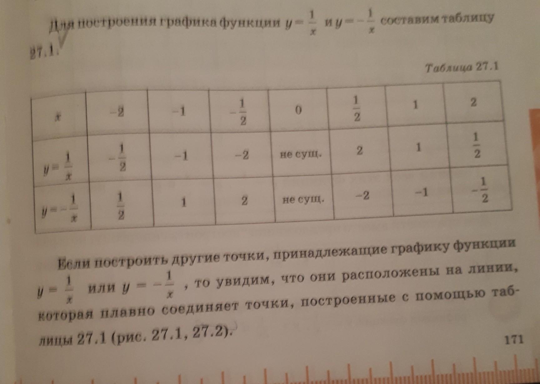 построение графика функции игрек равно 1 Икс и игрек равно минус 1 Икс составим таблицу