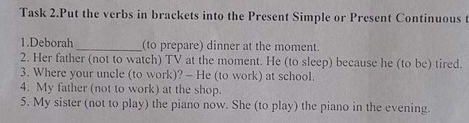 5.My sister isn't playing the piano now. She plays the piano in the evening.