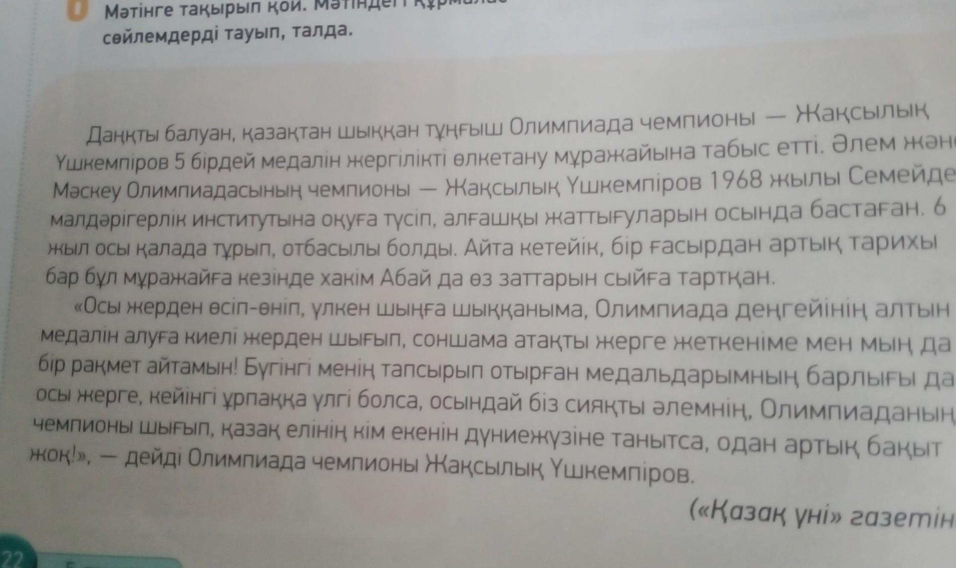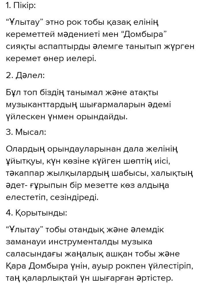 Айтылым Я 7 -тапсырма. Мәтіндегі ақпаратты «Терт сөйлем» тәсілін пайдаланып айт. Пікір. Оқыған мәтін бойынша өз пікіріңді бір сейлеммен жаз Дәлел. Өз пікіріңді бір сөйлеммен дәлелде. Мысал. Пікіріңді өмірмен байланыстырып, мысал келтір. Қорытынды. Тақырып бойынша қорытынды жаз.