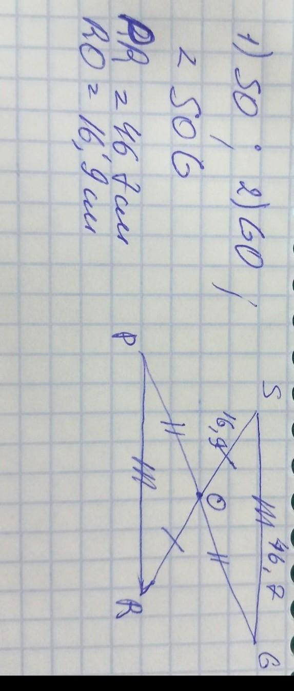 Найди величину сторон PR и RO в треугольнике PRO, если GS = 46,7 см и SO = 16,9 см