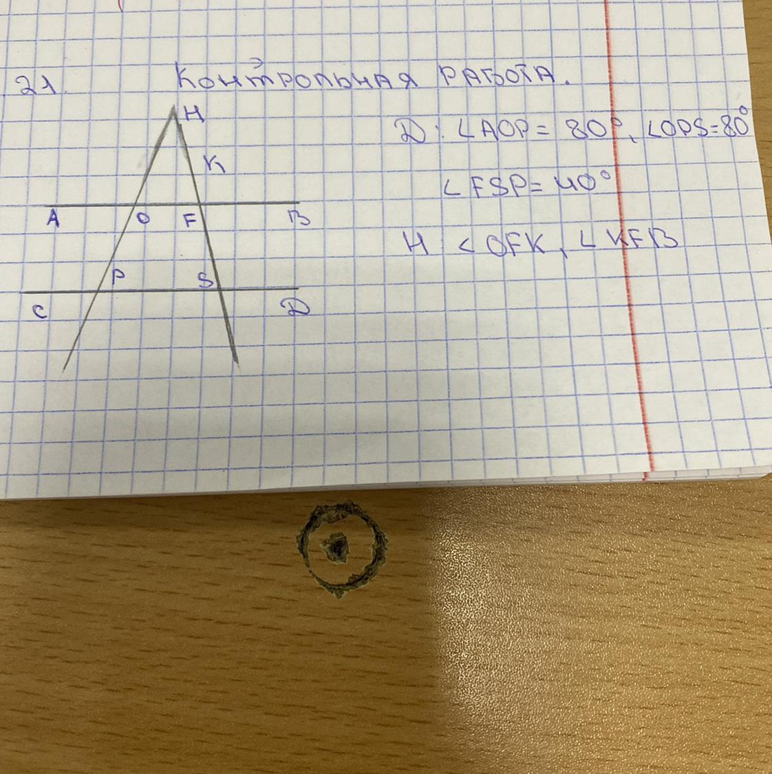 OFK = FSP = 40 (FSP = BFS (углы лежащие крест-накрест), BFS = OFK (Вертикальные углы))
