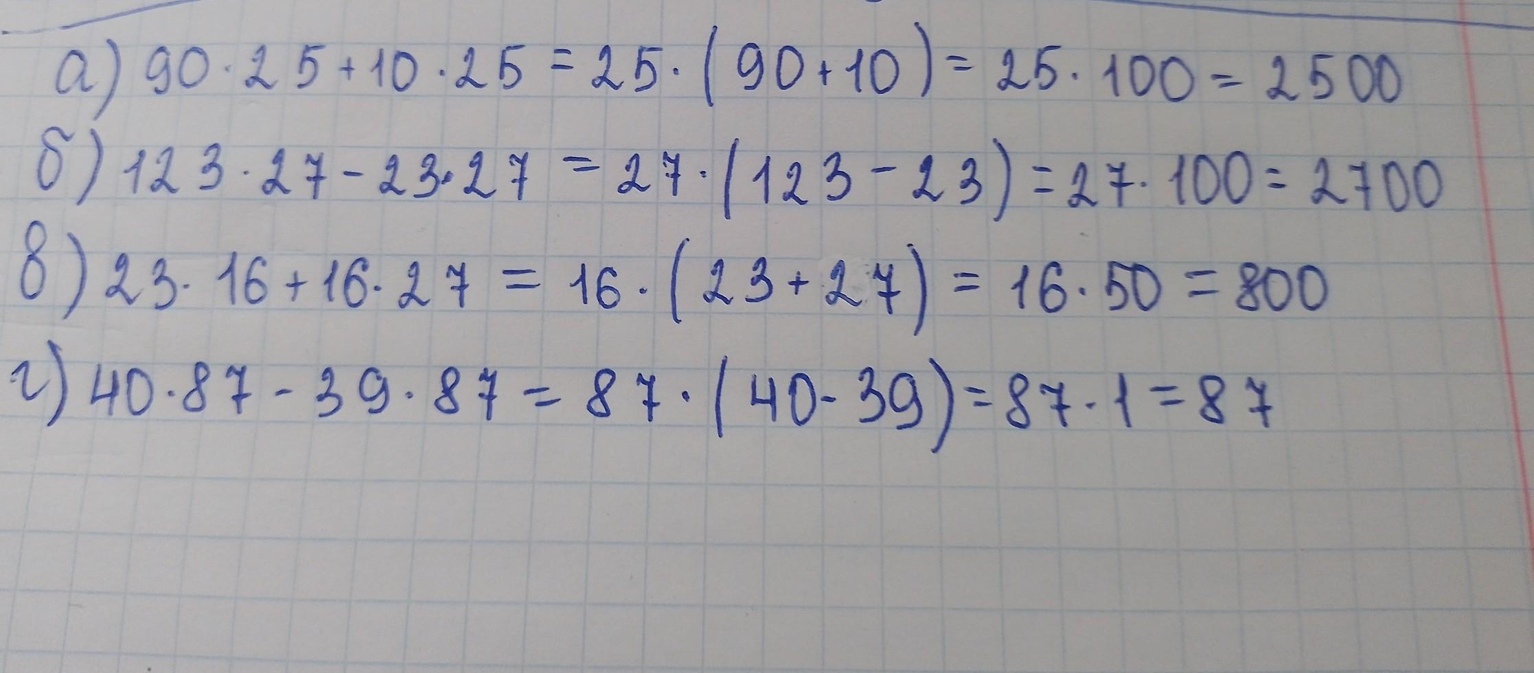 а) 90 ∙ 25 + 10 ∙ 25;
