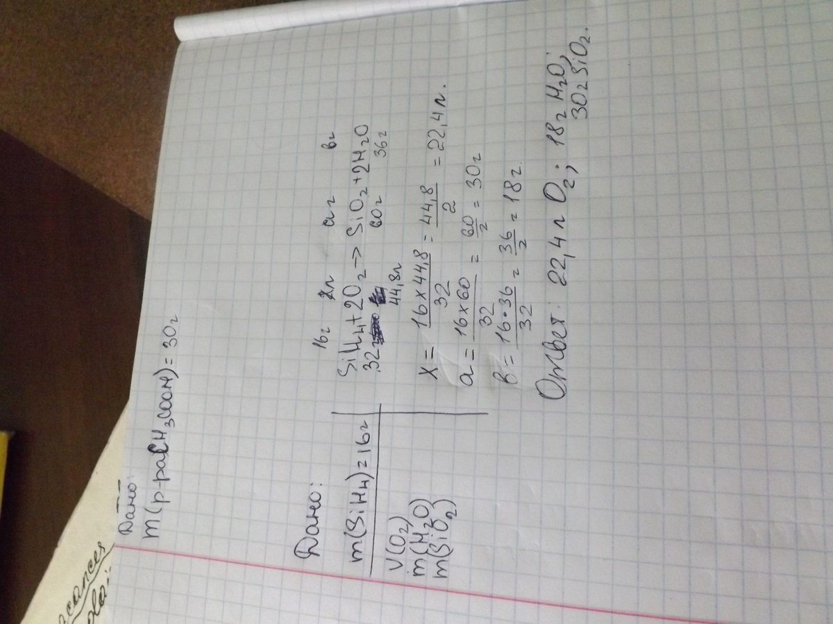При горении силана масса которого равна 16 г,образовала вещества.Вычислите массы всех веществ реакциц и объем кислорода при нормальных условиях необходимый для горения