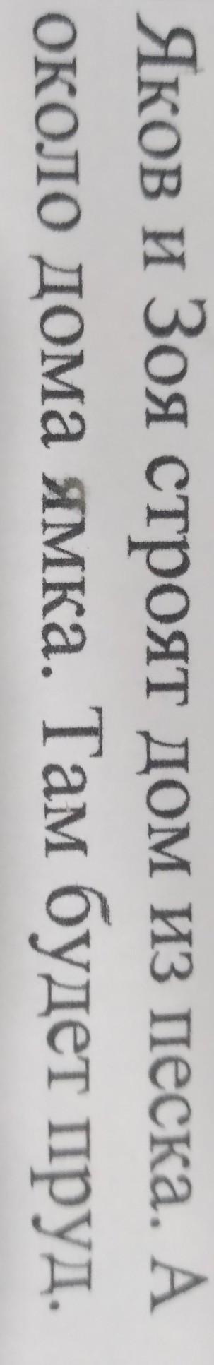 Я́ков и Зóя стрóят дóм и́з пескá. А óколо дóма я́мка. Тáм бу́дет пру́д.