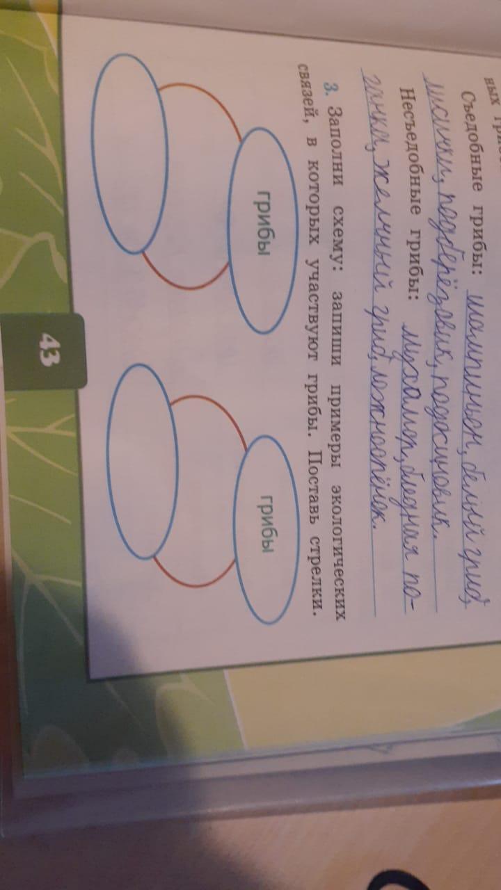 здравствуй, можешь сказать какой учебник? Щас тогда напишу, если не сможешь сказать то: нужно записать связи с грибами, а это ты можешь поискать свою книжку по типу: окружающий мир 4-5 класс и например автор Моро, и там ты найдешь то решение