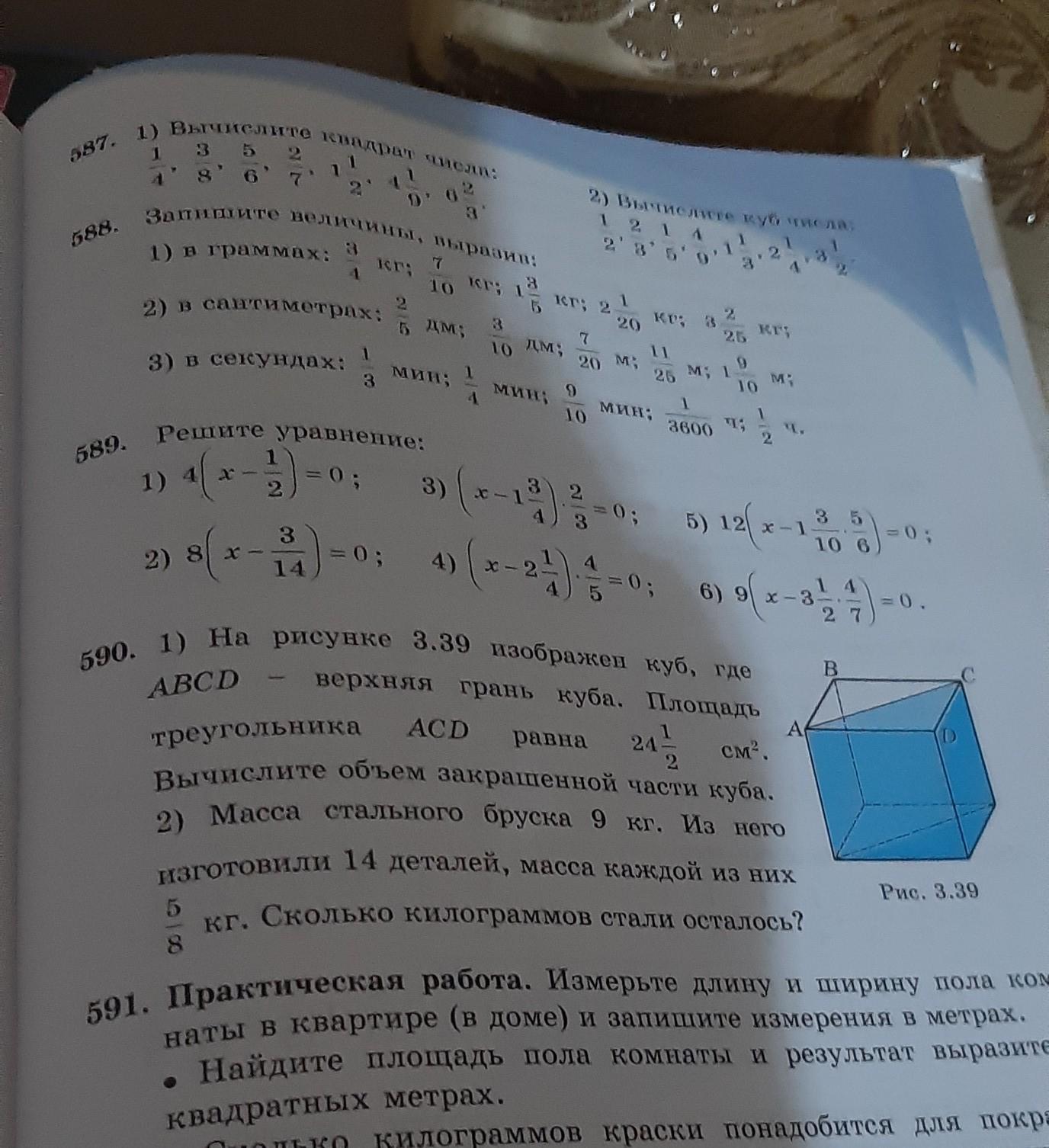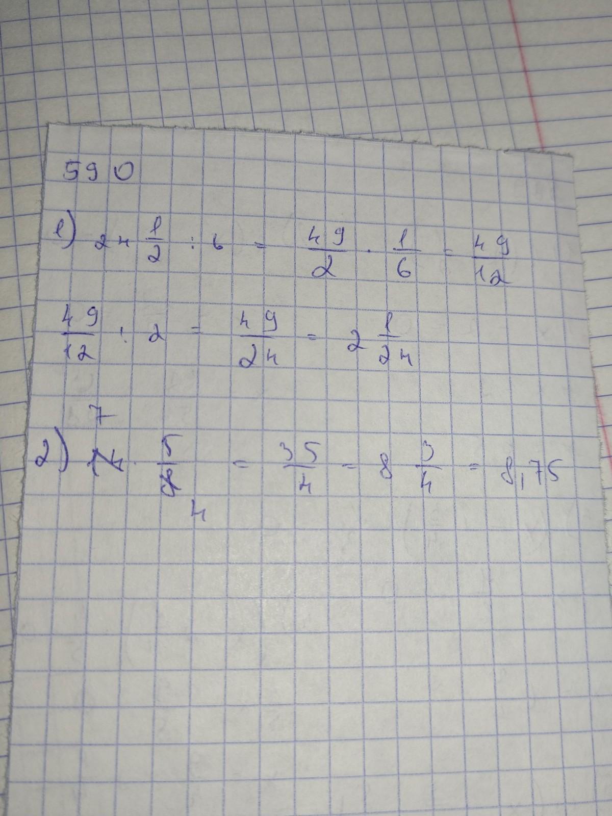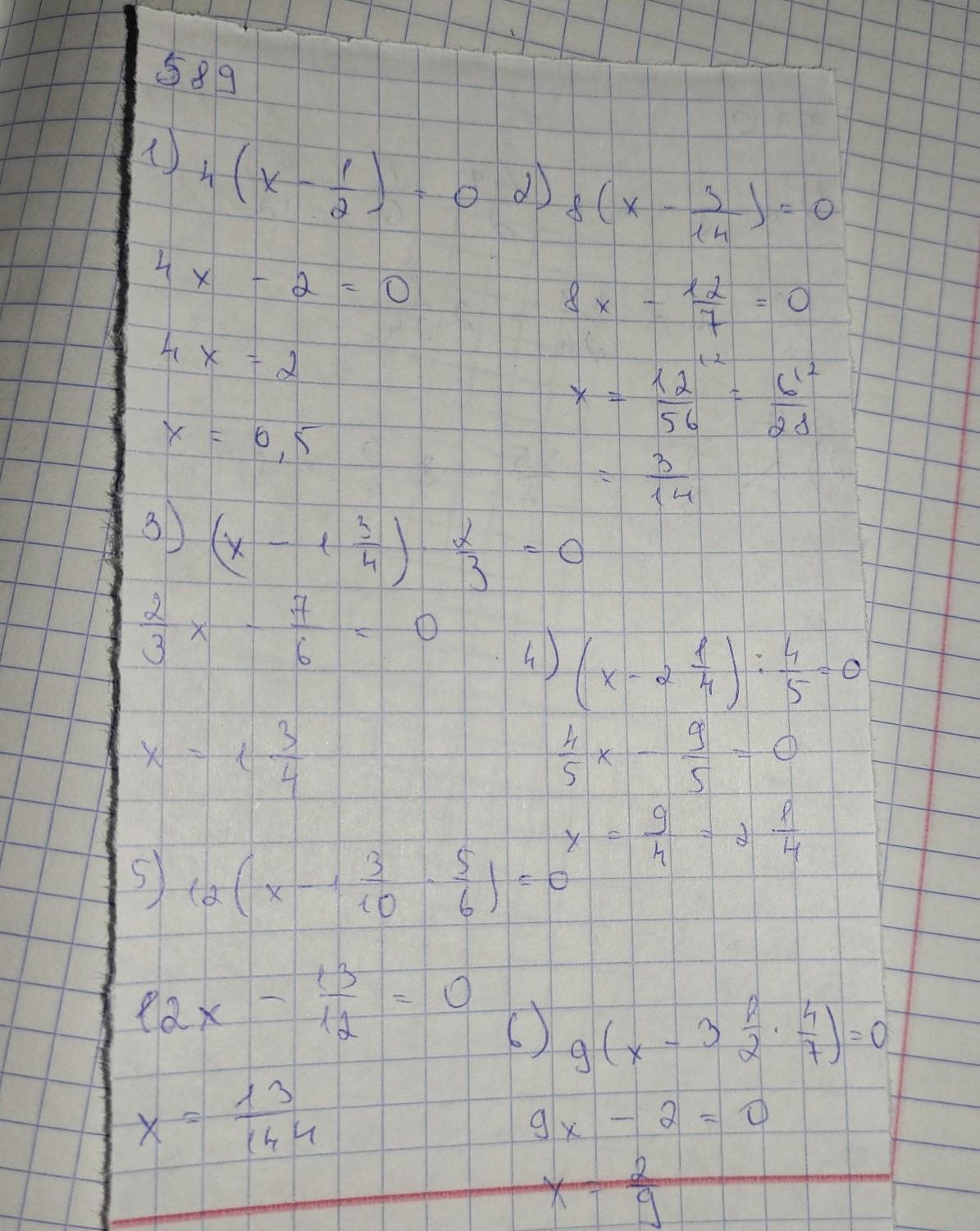 Ответ: 589: 1) 1/2; 2) 3/14; 3) 7/4; 4) 9/4; 5) 65/60; 6) 28/14=2