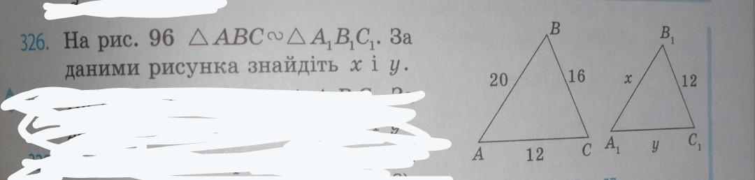 ~ если этот значёк это - равно, то y=12,а х=20,так как триугольники равны, их стороны тоже будут равны.