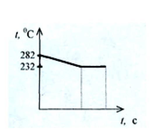 По графику зависимости температуры от времени определите, сколько тепла было отдано оловом массой 30 г, если известно, что всё олово стало твердым.