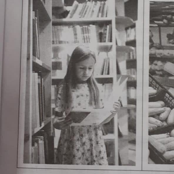 the picture shows young girl who really wants to become educated and smart, I can understand this because young lady stands in library with lots of books. Girl is reading a book, it seems that book is very interesting because little girl reads it with enthusiasm. I really enjoyed looking at this picture, because I can see girl who started to grow.