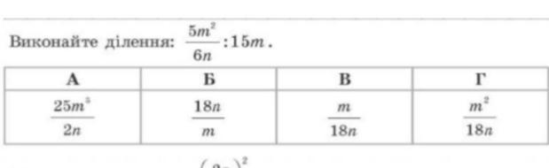 (5m²/6n) : (15m)= (5m²•1) / (6n•15m)=(m/18n)