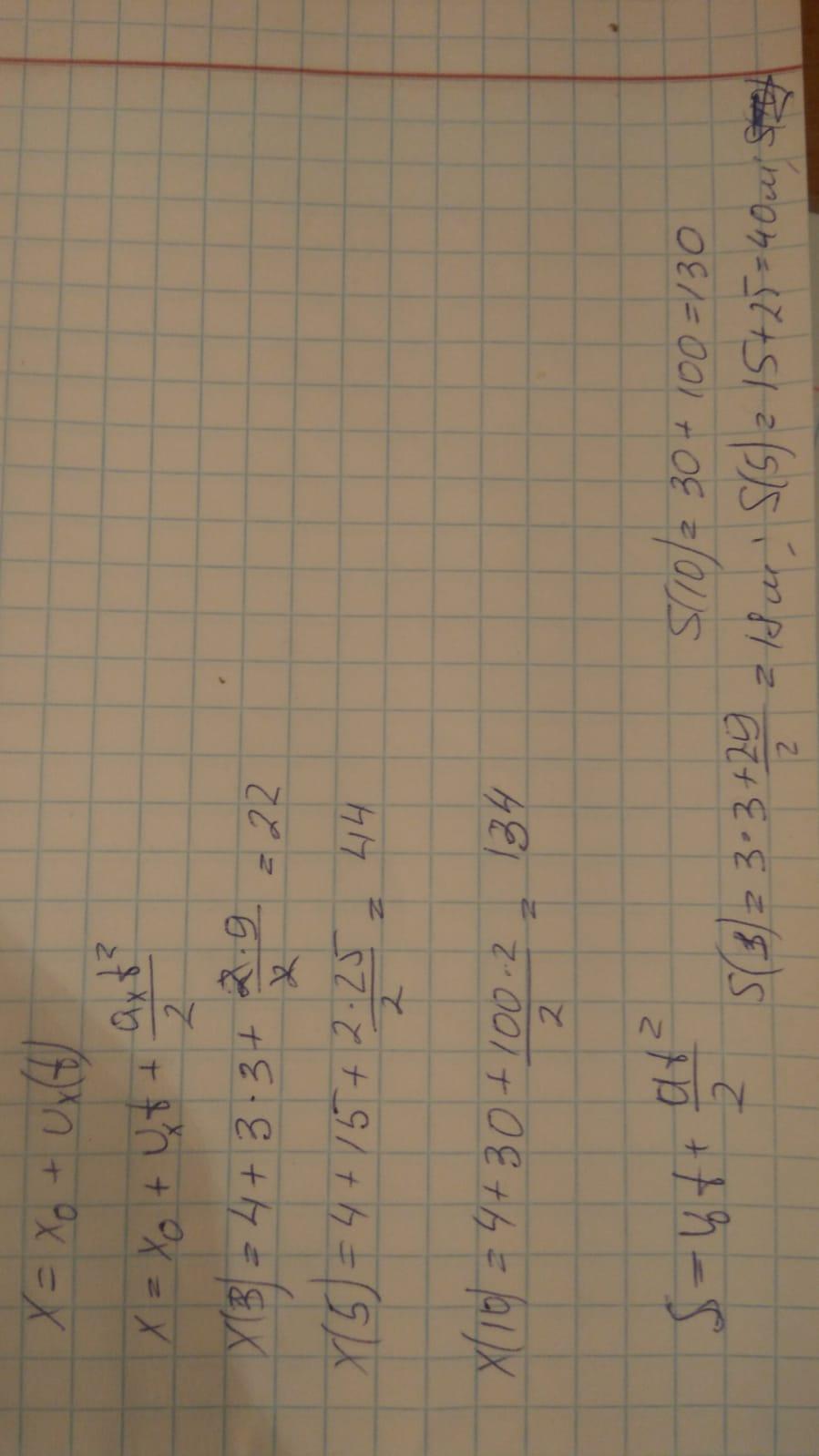 х(3)=22 м; х(5)=44 м; х(10)=134 м.
