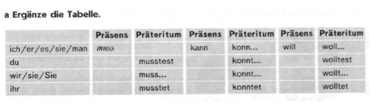 ich/er/es/ sie/ man muss/ musste/kann/konnte/will/wollte
