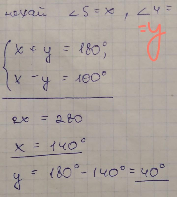 1.Знайти всі кути якщо при перетині двох паралельних прямих третьою січною якщо різниця односторонніх кутів 100°