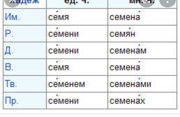 2. Особенности разносклоняемых имен существительных: 1) окончание – и в Р., Д., П. падежах ед. числа; 2) суффикс – ен – во всех падежах, кроме И. и В. в ед. числе; 3) окончание – им в Т.п. ед. числа.