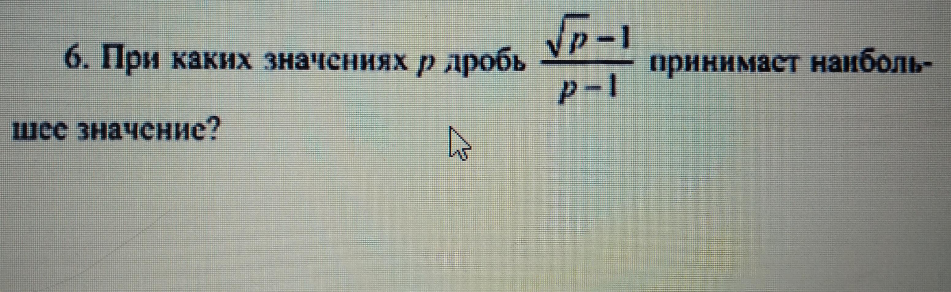 = ( √p - 1 )/[(√p - 1 )(√p + 1 ) ] = 1 /(√p + 1 ) . Бачимо , що найбільше