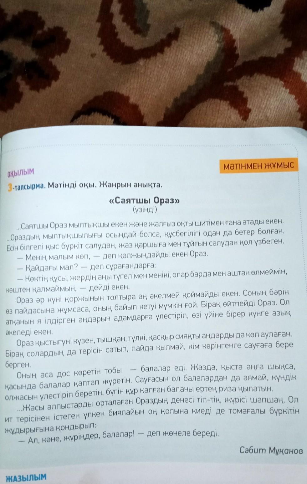 1 Ораз – саятшы, мылтықшы, құсбегілікпен айналысады.
