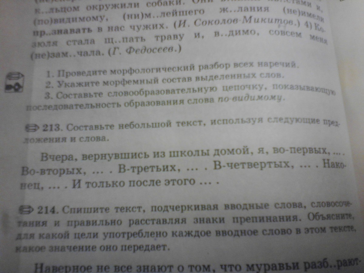 Вчера,вернувшись из школы домой,я во-первых плотно пообедал.Во-вторых,посмотрел телевизор.В-третьих,погулял в парке с друзьми.В-четвёртых,выучил уроки.В-пятых,сходил за братом в детский сад.В-шестых,поиграл на гитаре.В-седьмых,вымыл посуду.В-восьмых покормил черепаху и хомяка.И,наконец,поиграл в компьютерную игру.