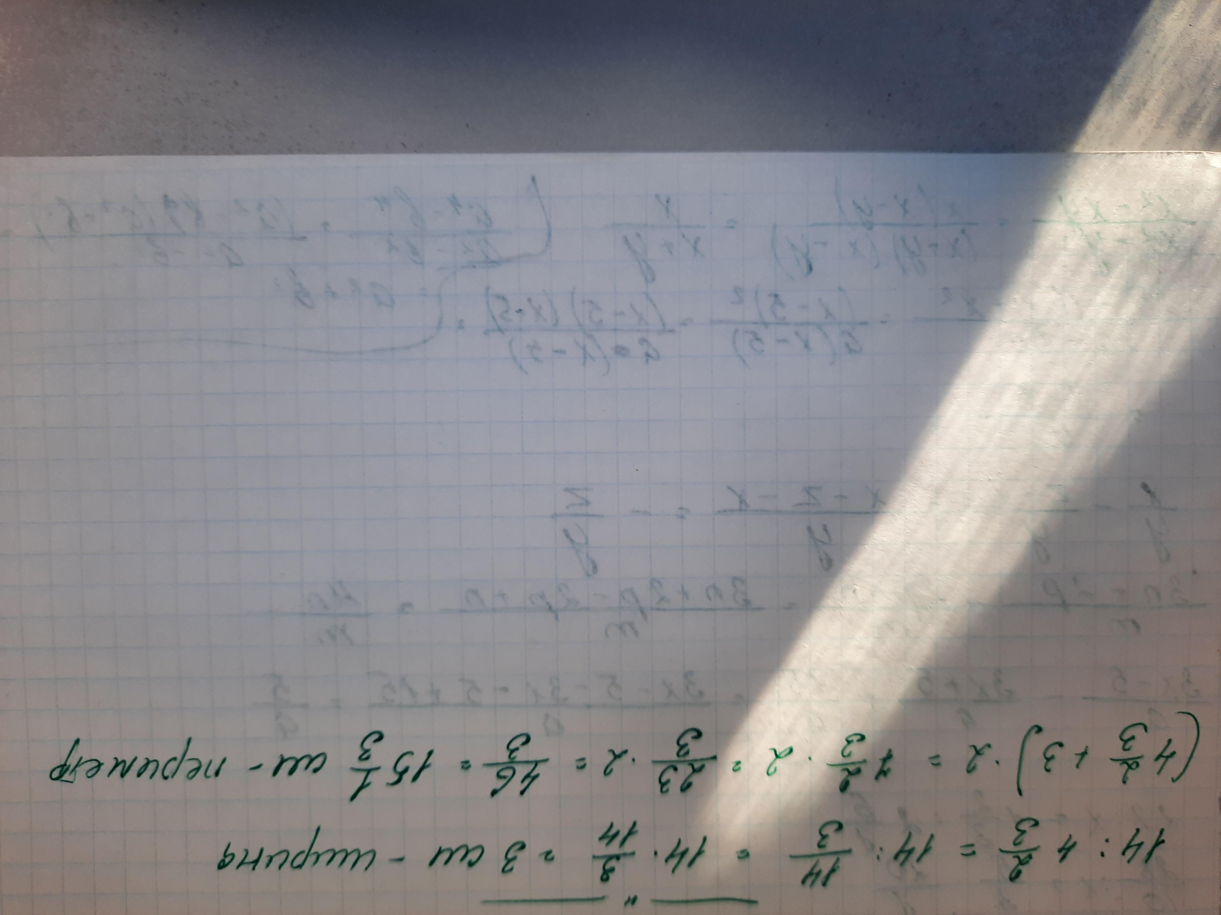 14 : 4 и 2/3 = 14 : 14/3 = (14 * 3)/14 = 3 (см);