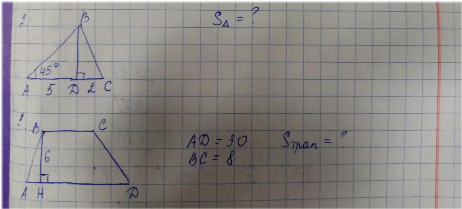 S=(30+8)/2×6=19×6=114 (ед^2)