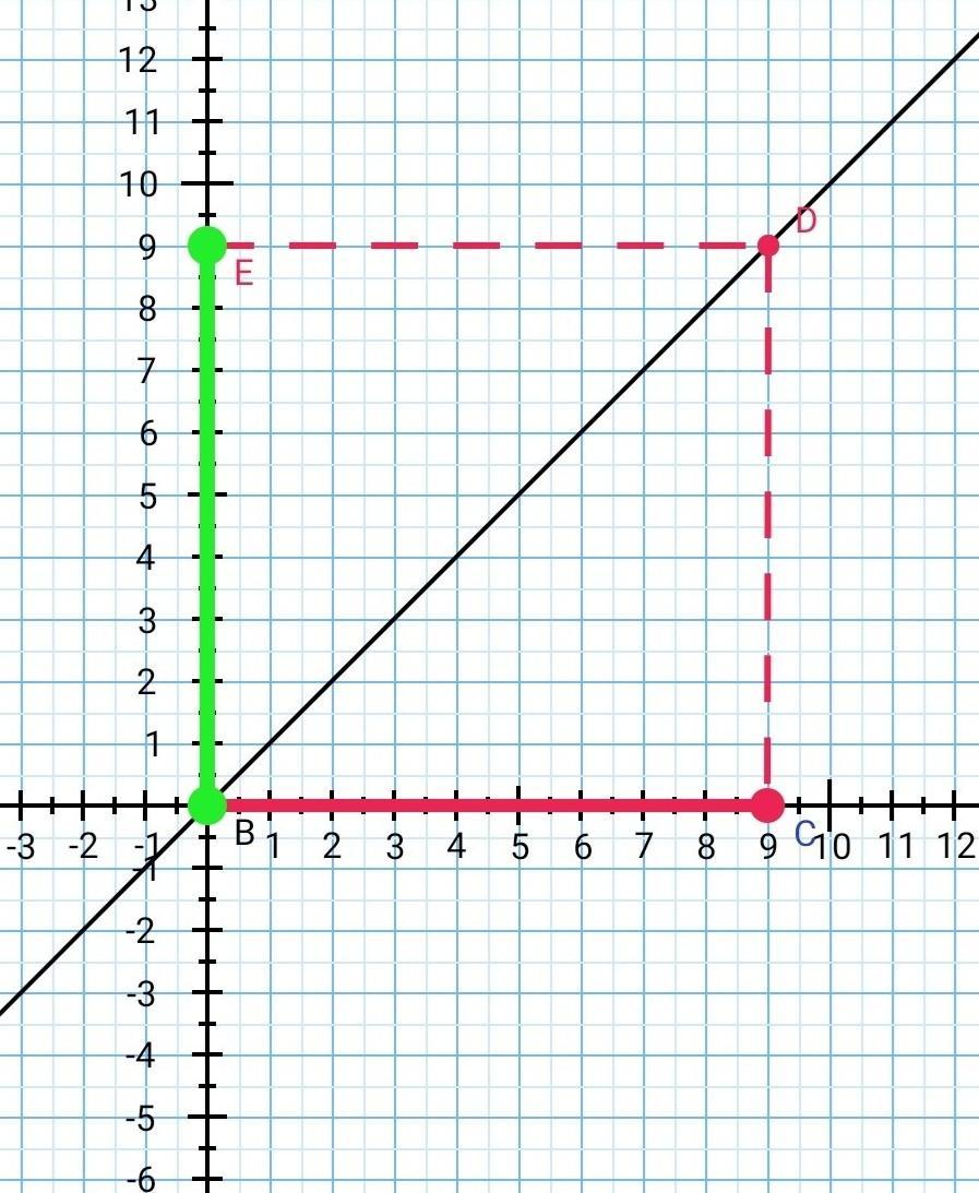 х Є[0; 9] (красный отрезок), то у так же принадлежит промежутку [0; 9] (зелёный отрезок).