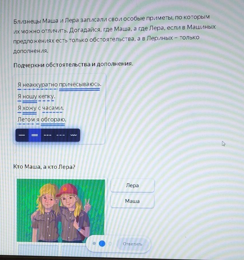 нет Маша не в кепке я сделала уже там Лера в кепке оказалось что не надо было сказуемое и подлежащее выделять