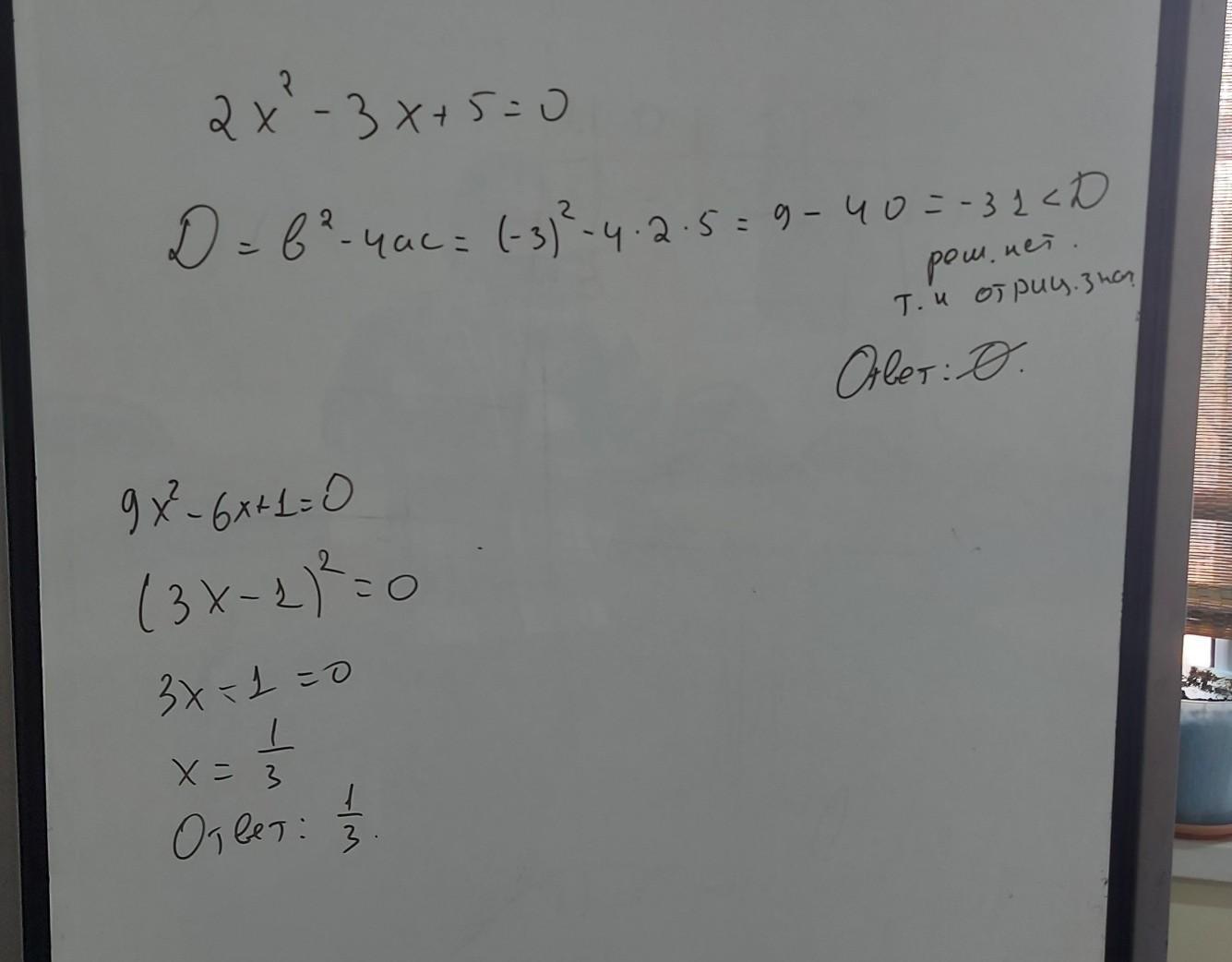орёт решить уравнение используя дискриминант . Или формулу квадрата разности во втором уравнение