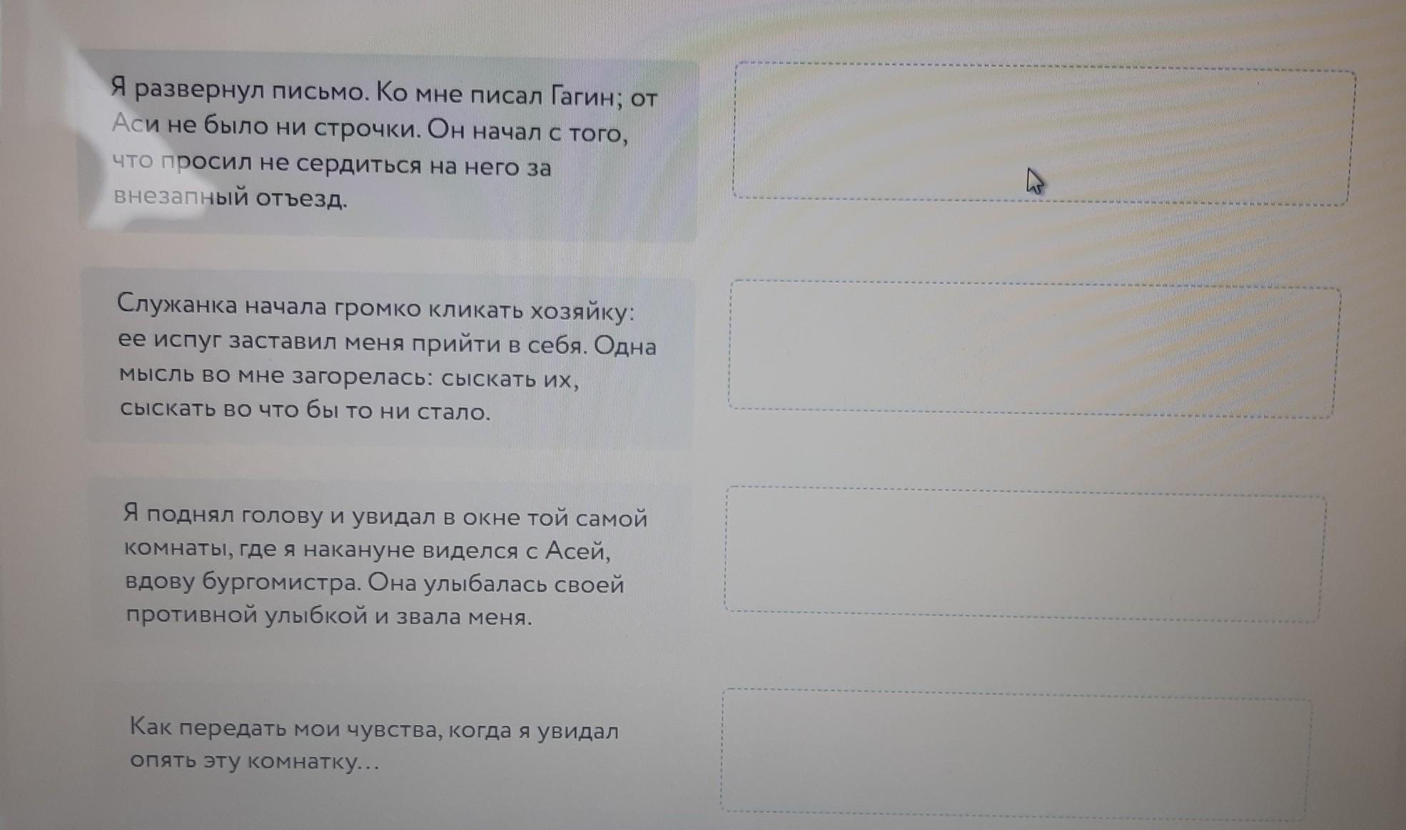 Расставьте предложения в правильной последовательности: так, чтобы они соответствовали ходу повествования отрывка повести.